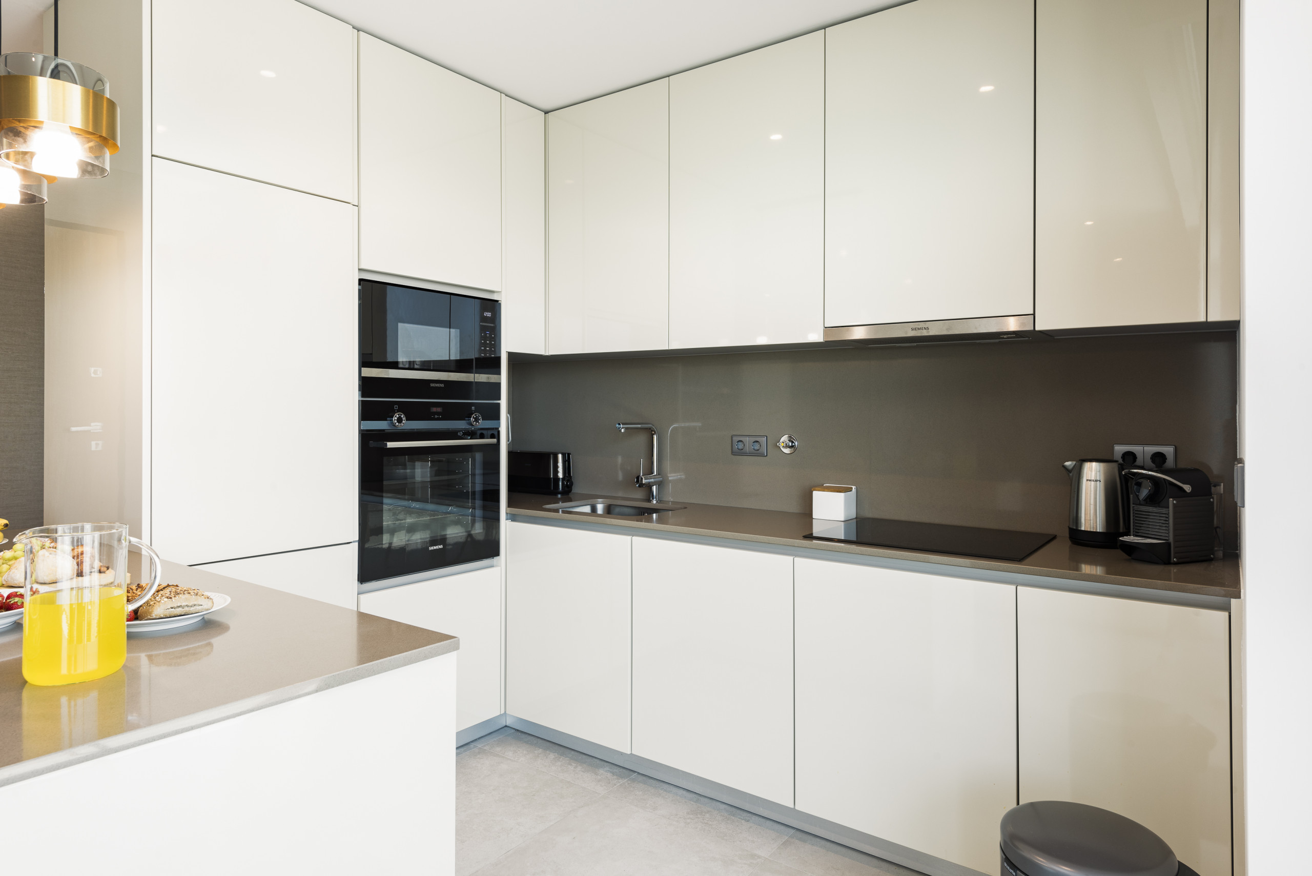 A cozinha está totalmente equipada com eletrodomésticos novos: forno elétrico, placa elétrica, micro-ondas, máquina de lavar louça, chaleira, torradeira, máquina de café e máquina de lavar roupa. Todos os utensílios de cozinha, louças, talheres, utensílios e copos são fornecidos. A área de estar é composta por um sofá grande, TV inteligente de última geração e ar-condicionado.